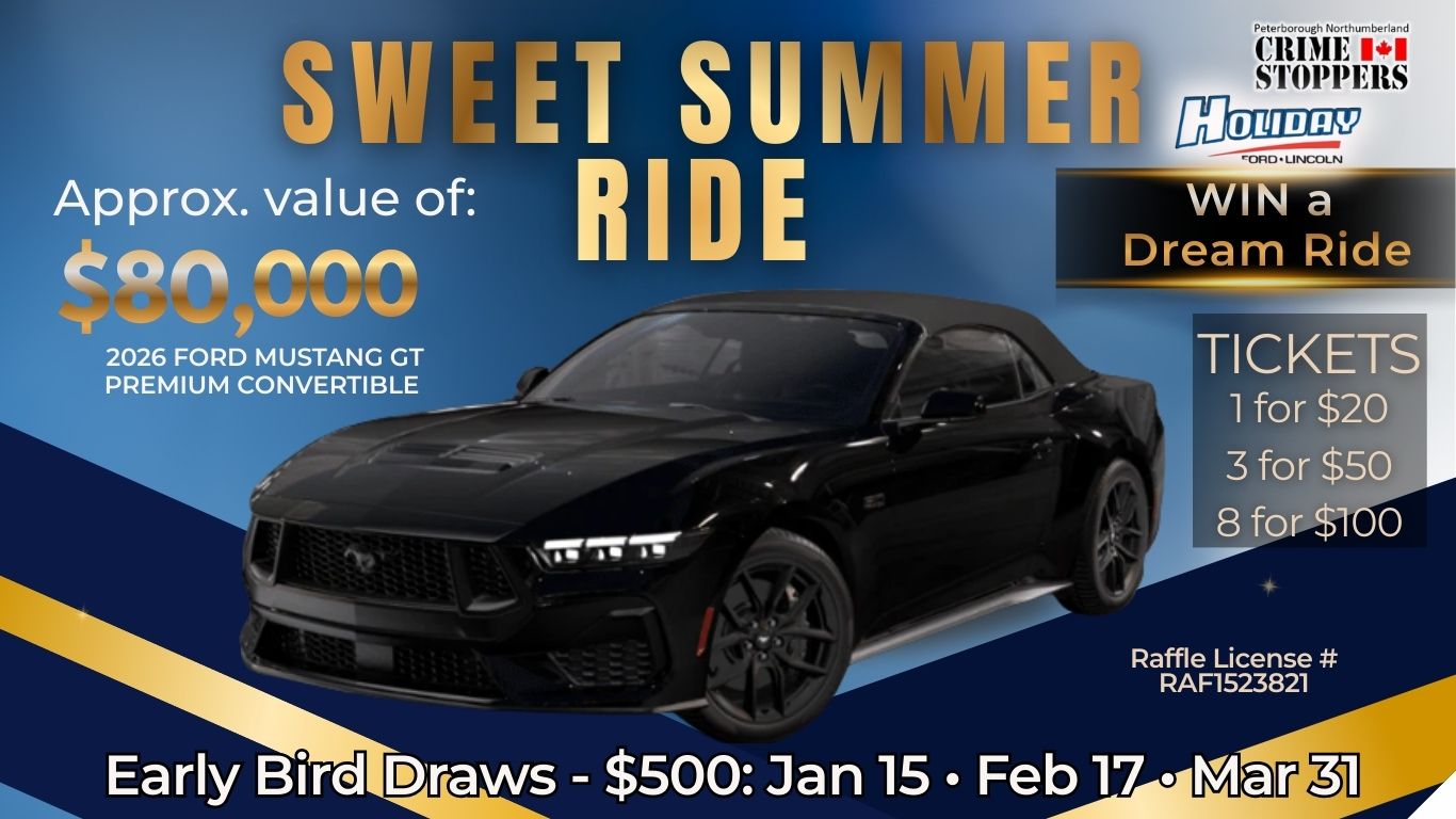 Peterborough Northumberland Crime Stoppers is a non-profit charitable organization run by a volunteer community board. The program is supported by donations from individuals, concerned citizens, business, and service clubs.